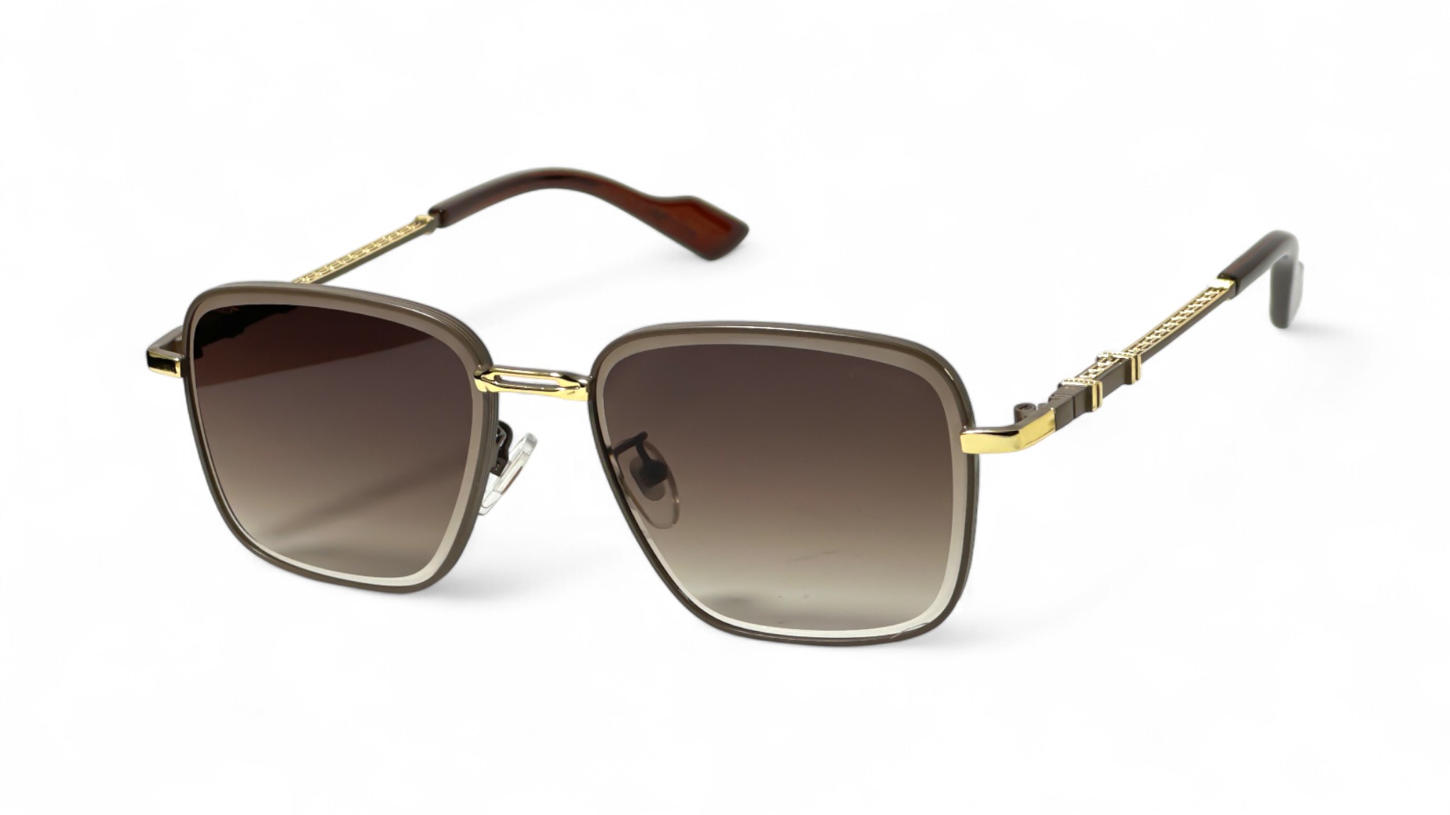 Grevion Square Sunglasses in a premium Metal Frame, designed with a Sleek Fit for modern sophistication. These frames feature a soft brown gradient lens with gold-detailed temples and a subtle rim accent, offering a perfect balance of elegance and comfort. Ideal for those who appreciate timeless luxury and elevated everyday fashion.