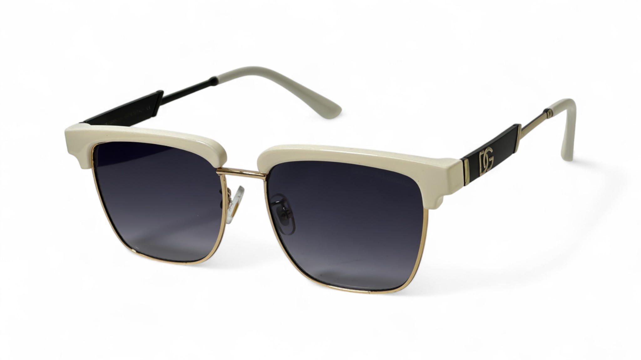 Solviera Square Sunglasses in a Metal Frame, designed with a Sleek Fit for contemporary sophistication. These frames feature an ivory-accented top rim with gold temples and black side detailing, creating a refined contrast of elegance and power. Perfect for those who value high-fashion eyewear with a confident, polished edge.