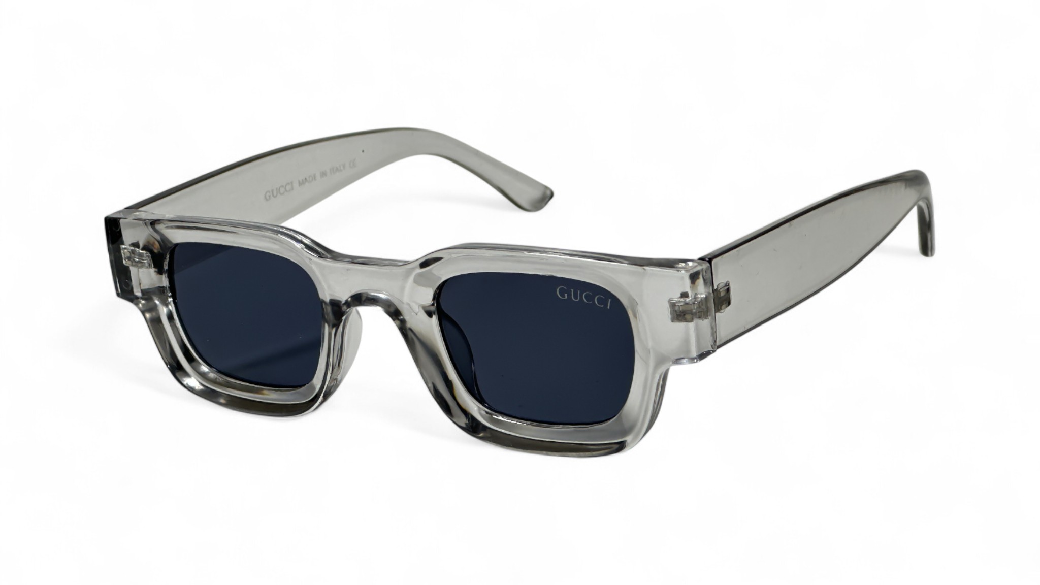 The Vellora sunglasses feature a modern, transparent frame with a sleek, square shape. These sunglasses combine minimalistic style with bold design, offering a chic look that complements any outfit with a touch of luxury.